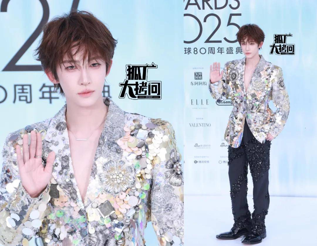 张凌赫最近几次的红毯造型都偏保守和安全,帅气但不够出彩。这次他身着黑色雪花套装,就像一个帅气的秀场模特。