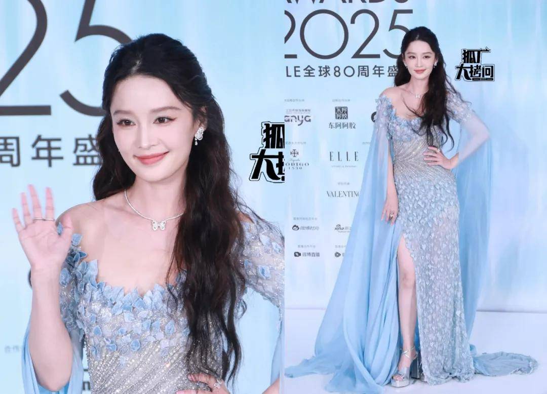 李沁的造型团队或者她本人选裙子的眼光总是会浪费她的美貌,这次的蓝色花朵长裙更像是来自街边影楼的婚纱。